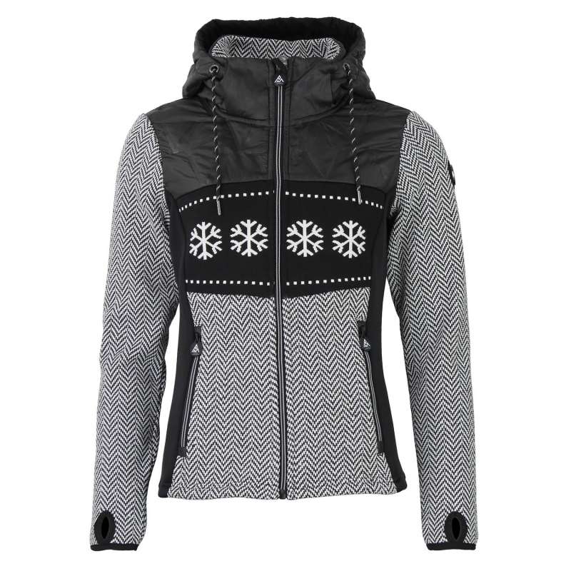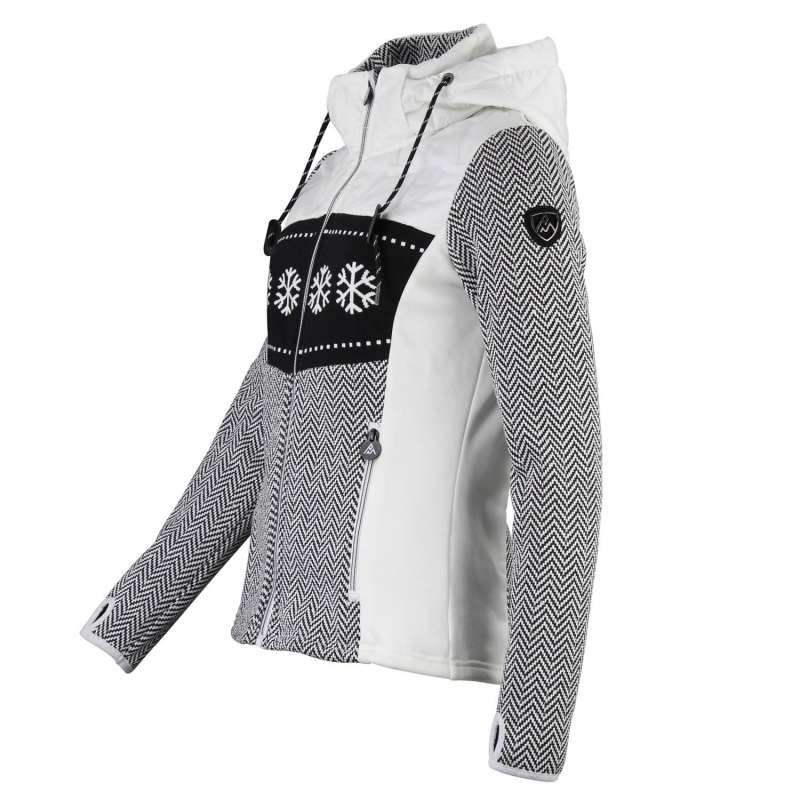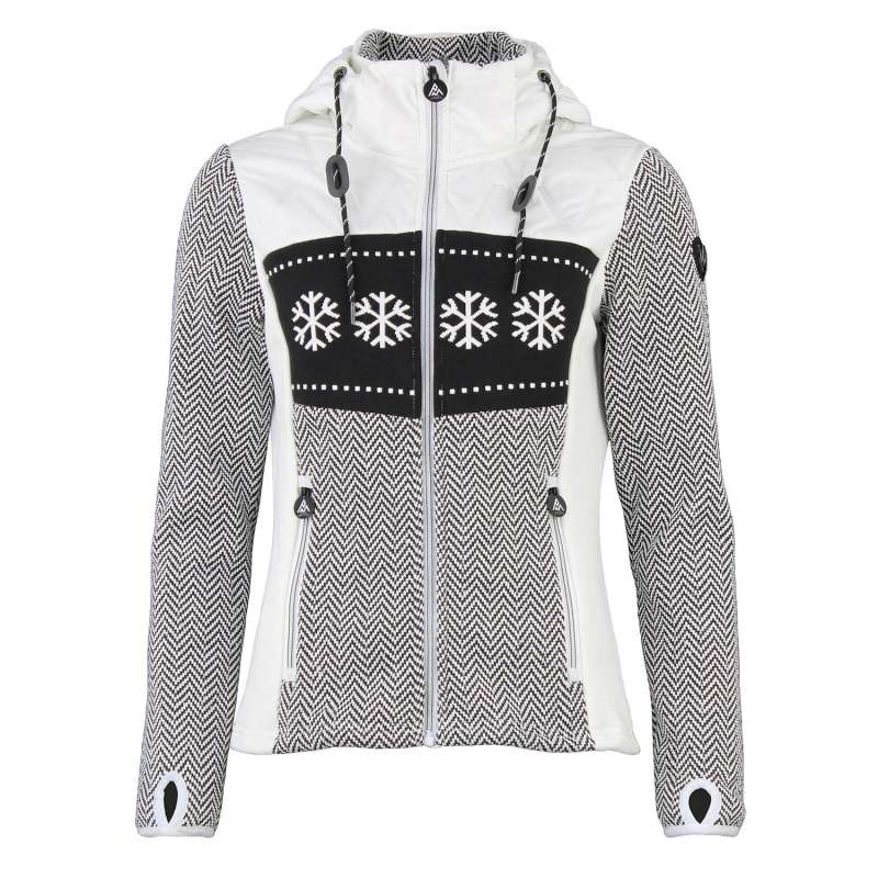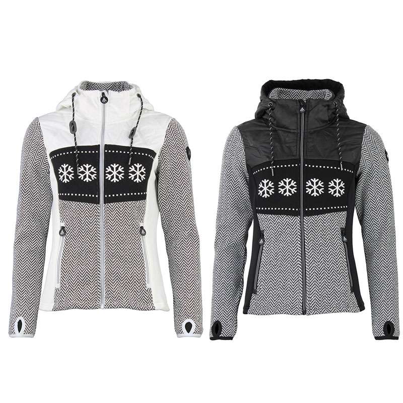 Blouson polaire femme 100% polyester motifs jacquard et flocons / empiècements matelassé