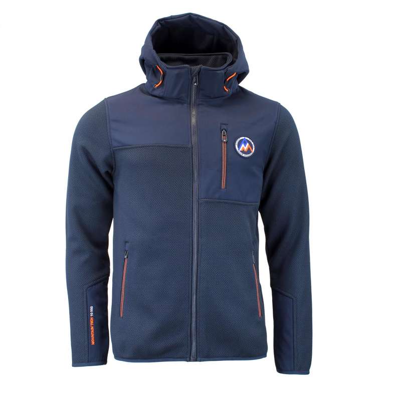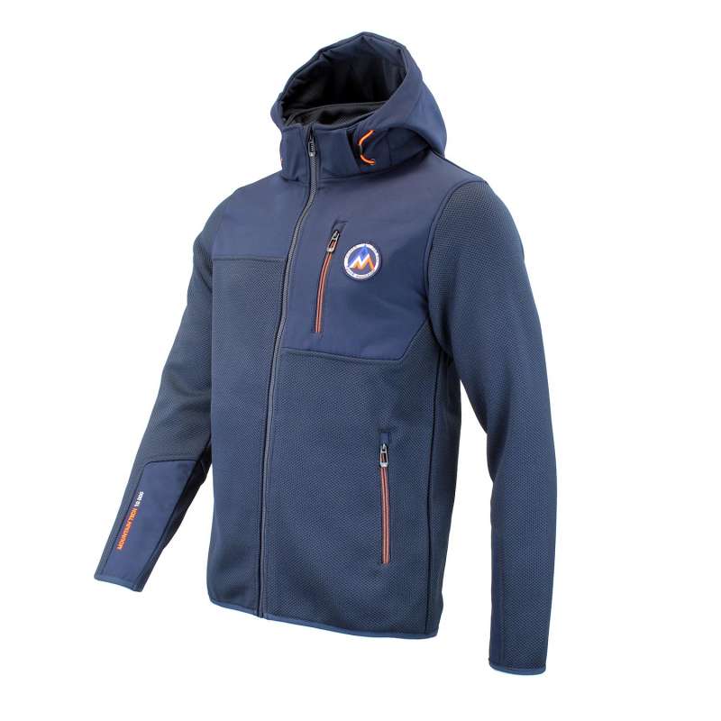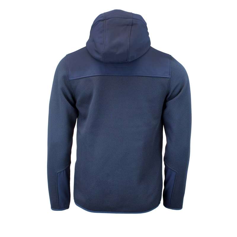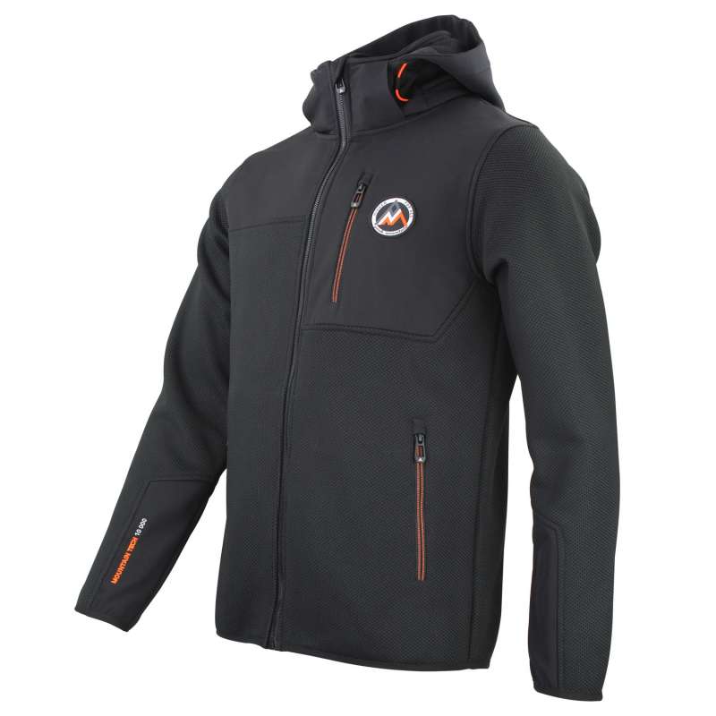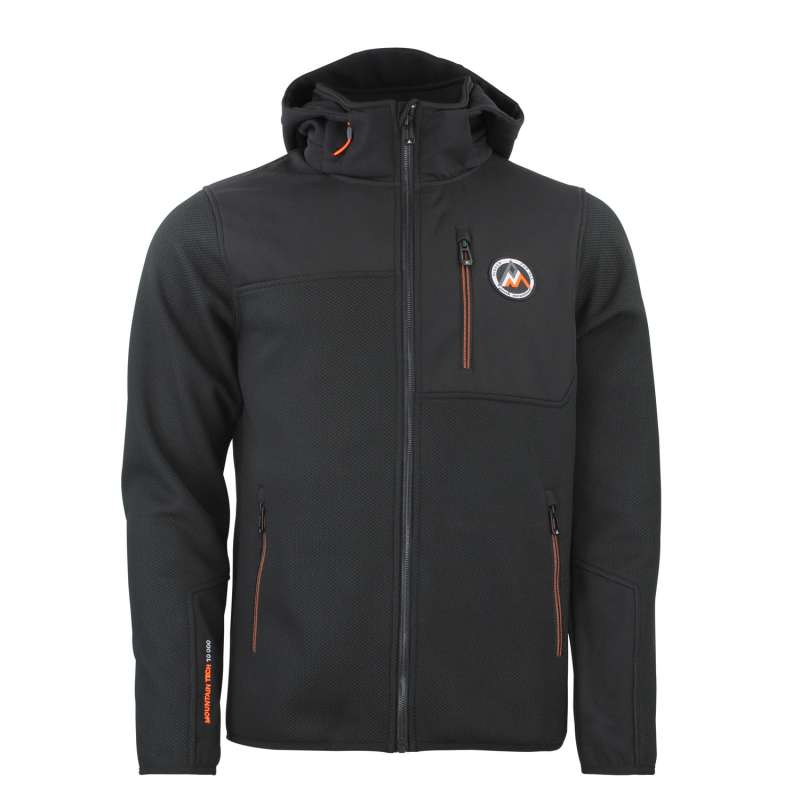 Blouson homme 100% polyester, tissu jacquard, empiècements softshell