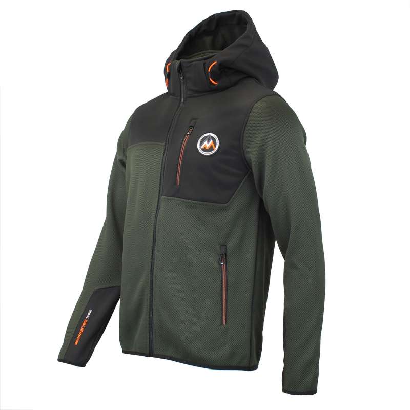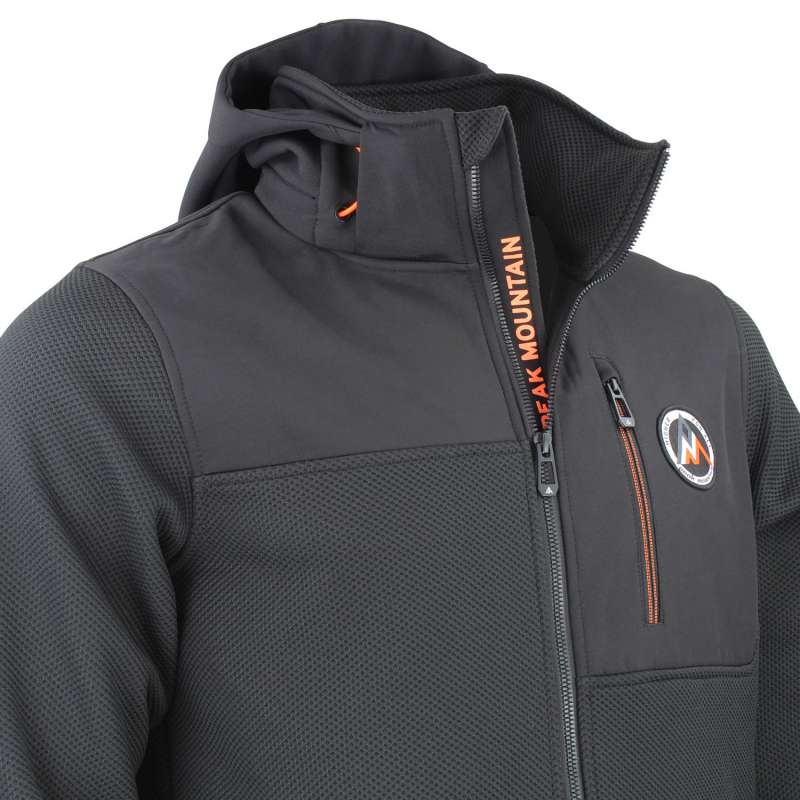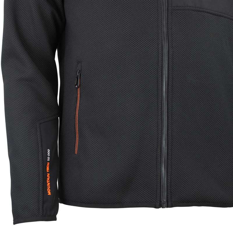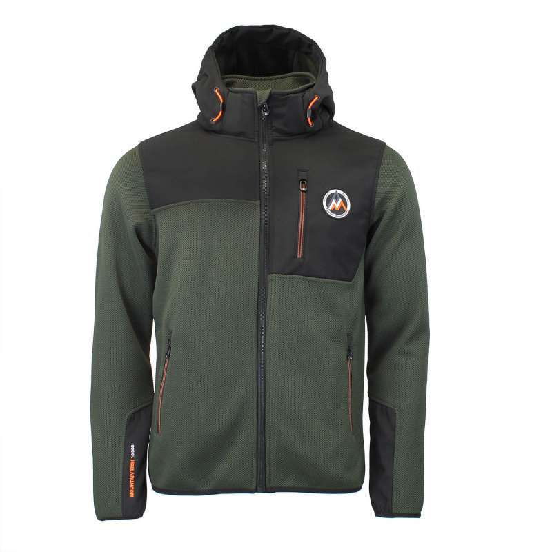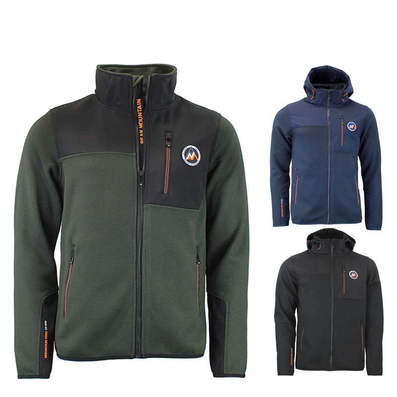Blouson homme 100% polyester, tissu jacquard, empiècements softshell