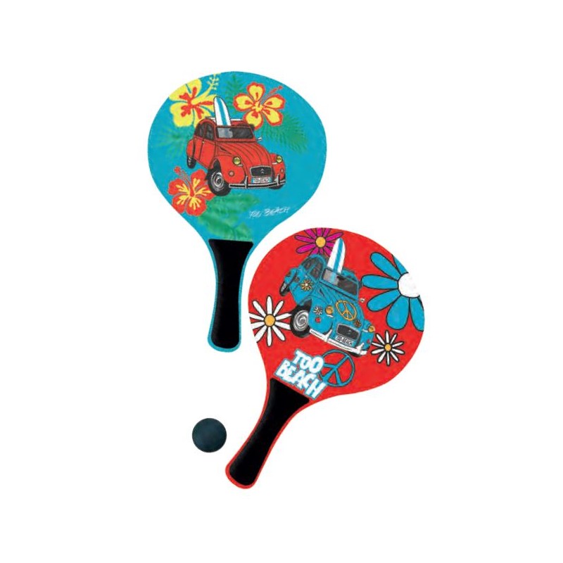 Raquettes de plage fluo COMBI en bois + 1 balle