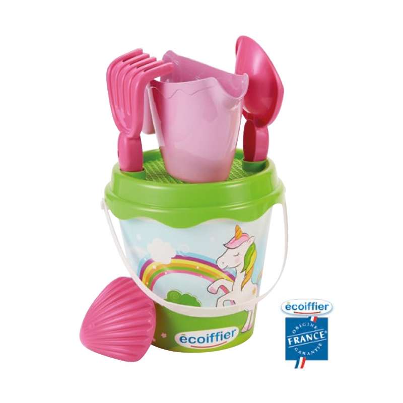 Seau garni LICORNE, avec pelle, râteau, arrosoir et un moule