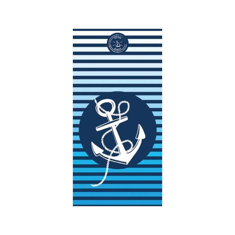 Serviette de plage en coton velours, motif ESCALE MARINE